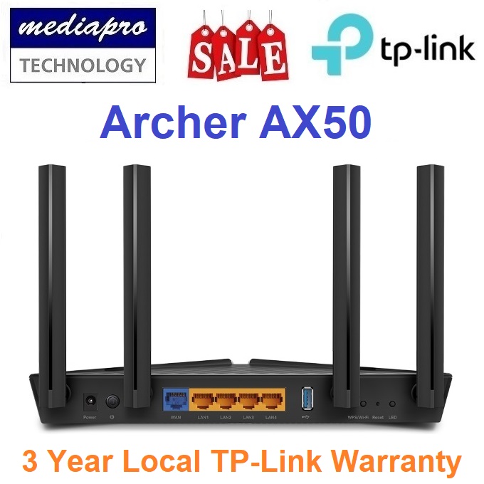 TP-Link Archer AX50 Next-Gen Gigabit Wi-Fi 6 AX3000 Dual Band Gigabit Router - Built-in Antivirus, QoS, Parental Controls - 3 Year Local Distributor Warranty