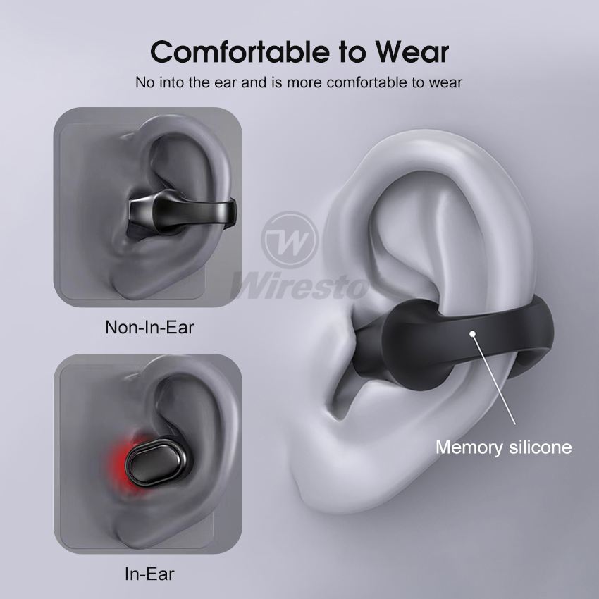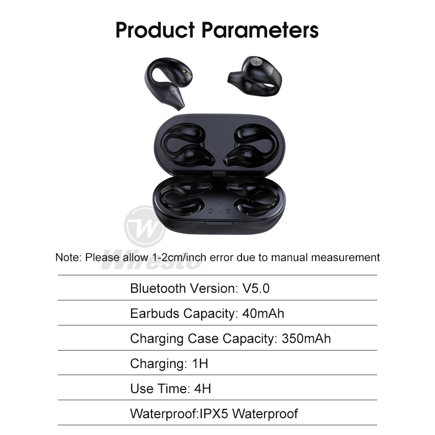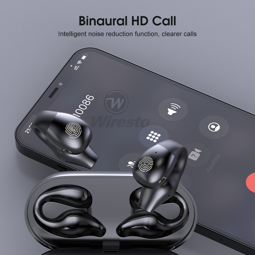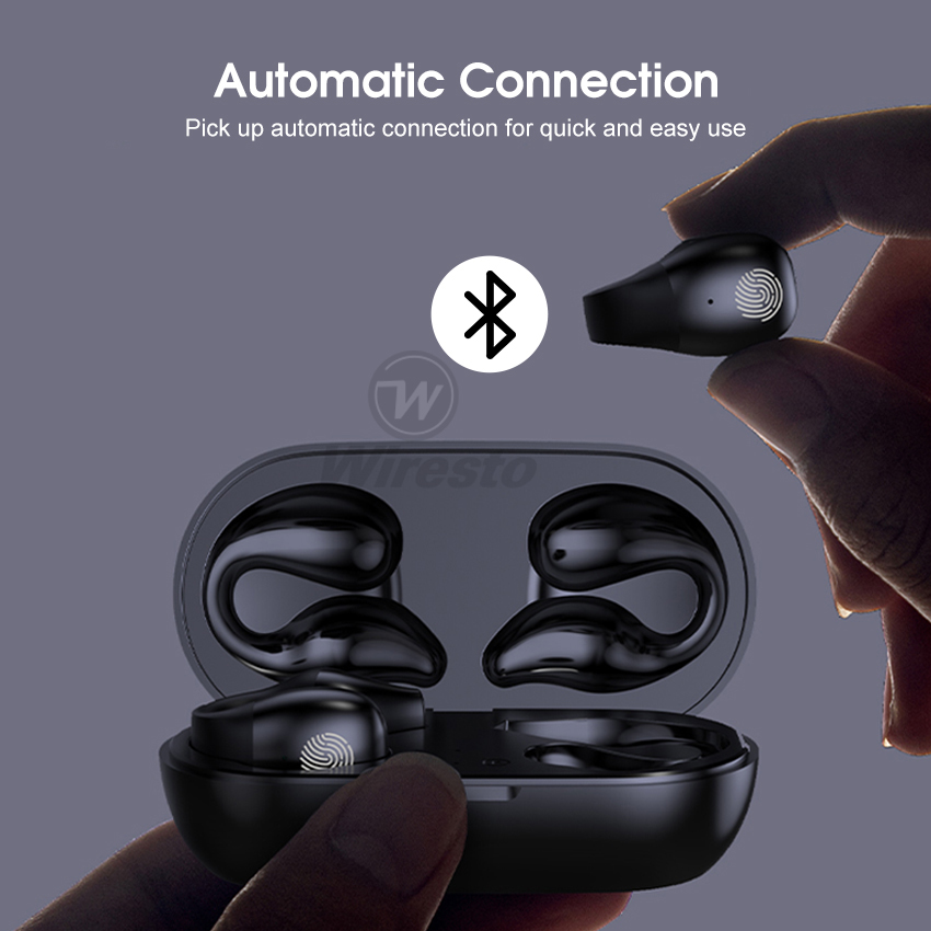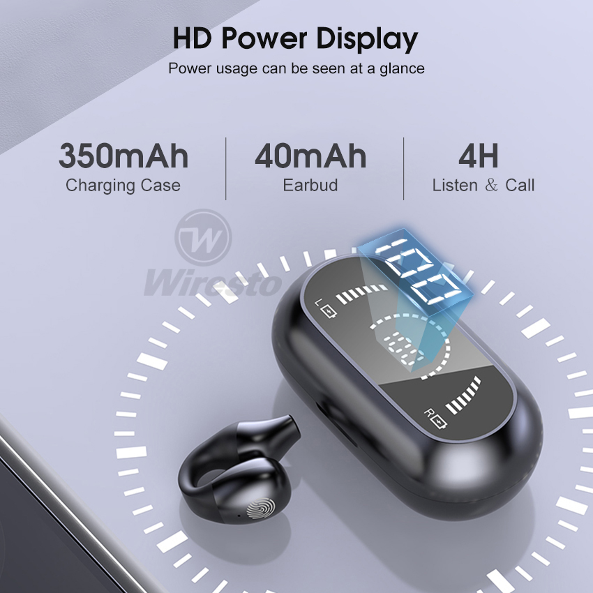 Wiresto TWS Bluetooth 5.0 Earphone No In-Ear Headphones Wireless Sport Earbud Ear Hook Earphones Power Display Headset HD Call Earbuds Waterproof Sweat-proof Earphones