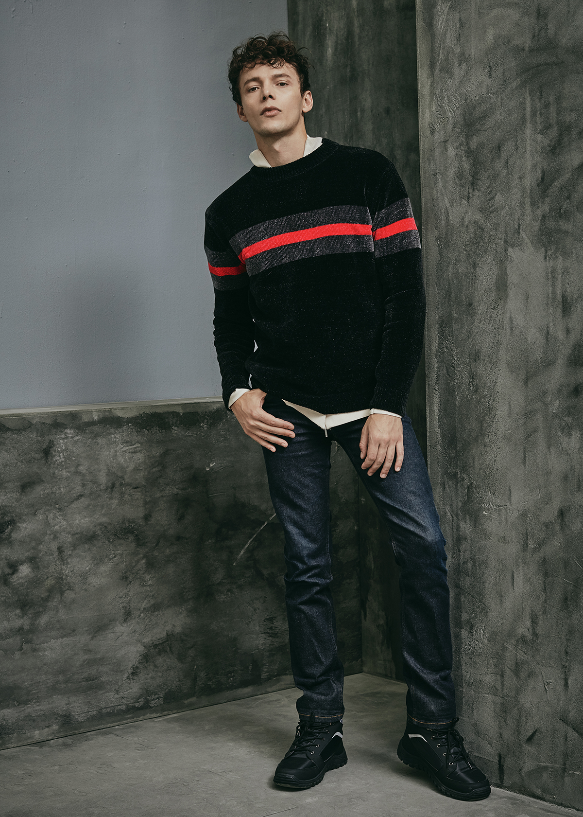 CREW NECK KNITTED SWEATER WITH STRIPE PRINT - KS9146