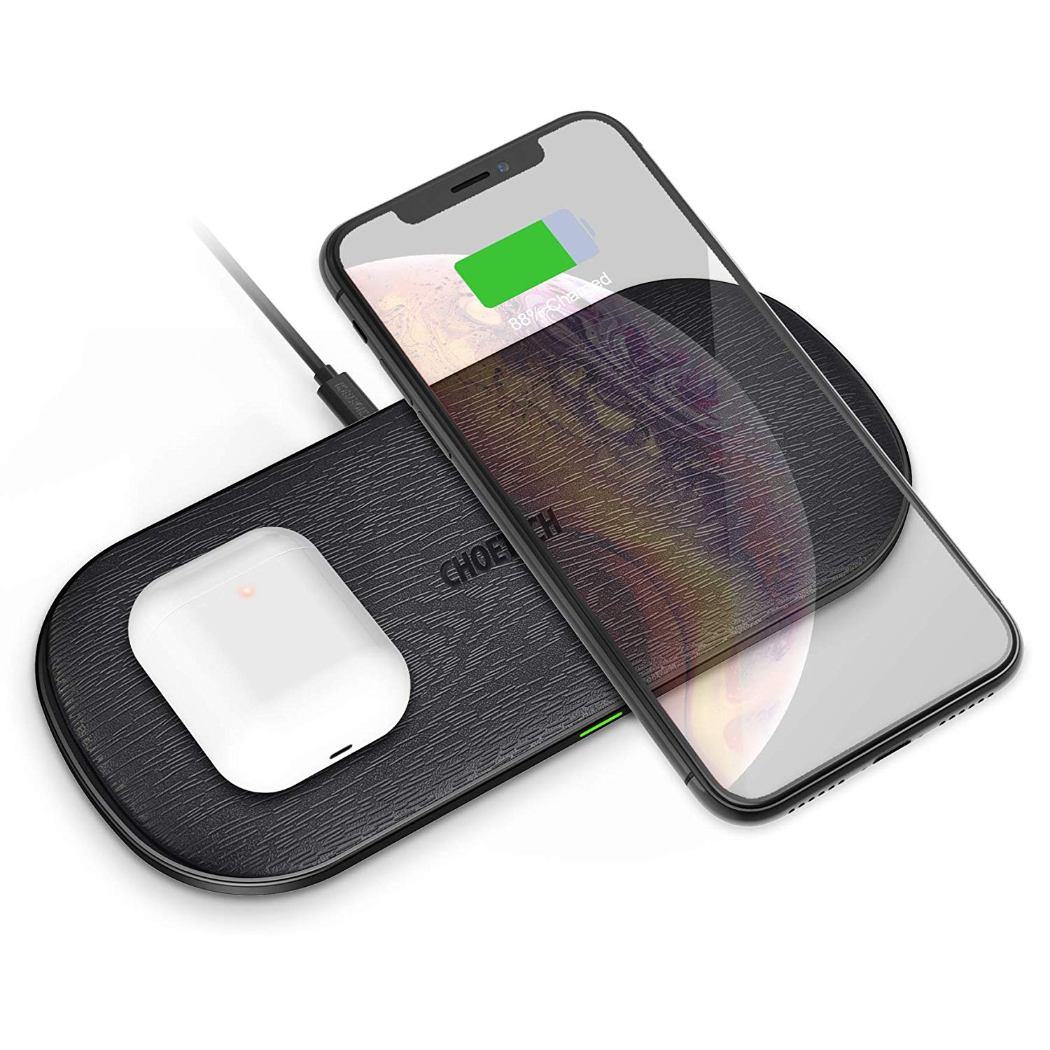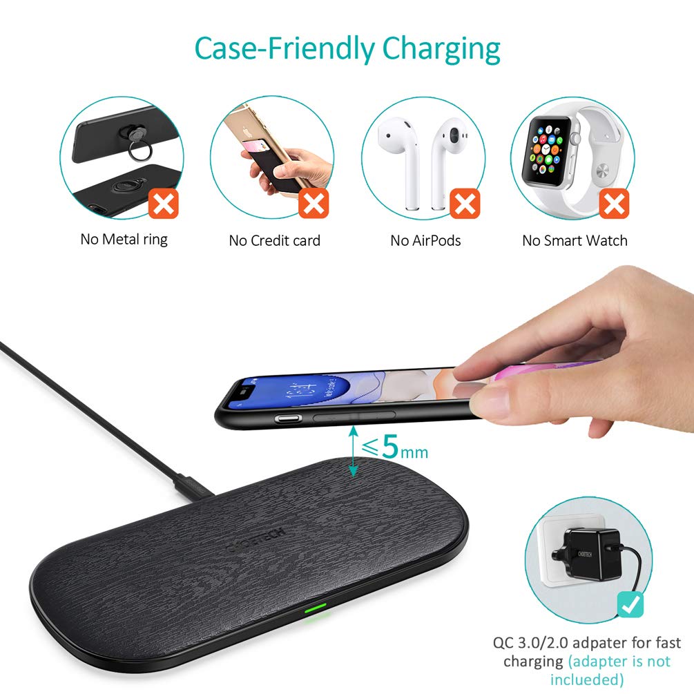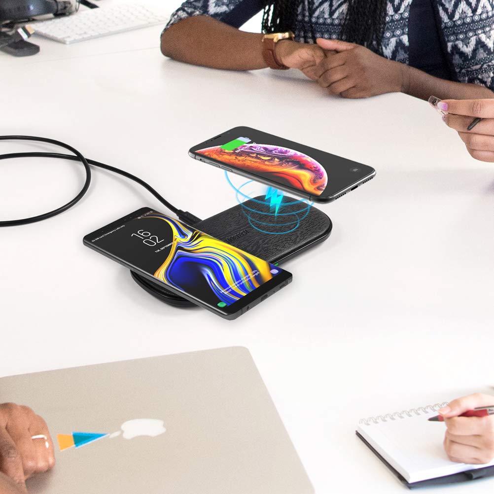 CHOETECH PowerDual 5 Coils Qi Certified Fast Wireless Charging Pad For iPhone 11/ 11 Pro/ 11 Pro Max, AirPods Pro, Samsung - Wood Grain