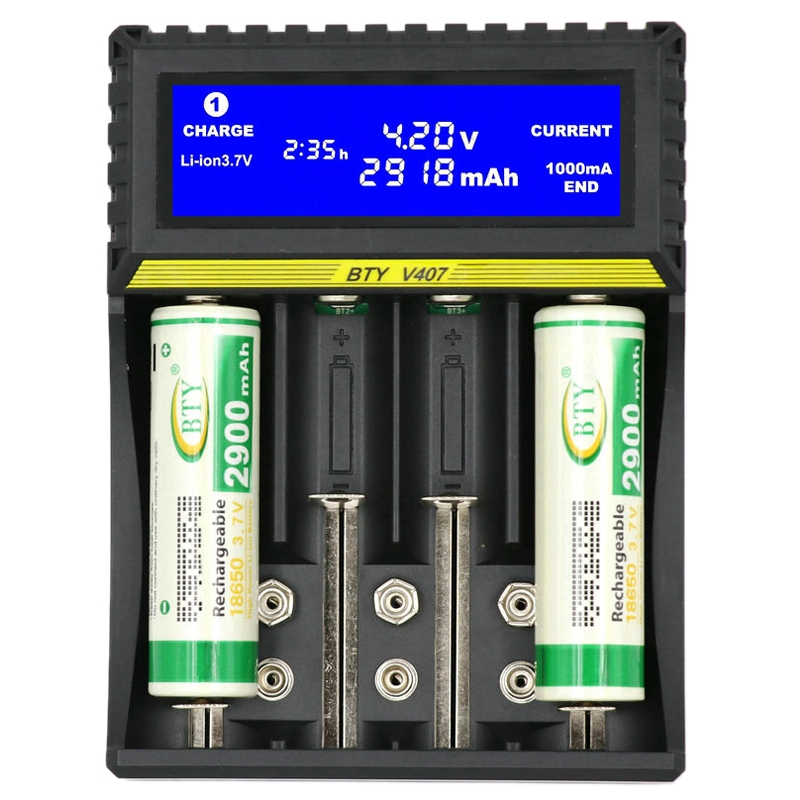 BTY-V407 Battery Charger Li-ion Li-fe Ni-MH Ni-CD Smart Fast Charger for 18650 26650 6F22 9V AA AAA 16340 14500 Battery Charger
