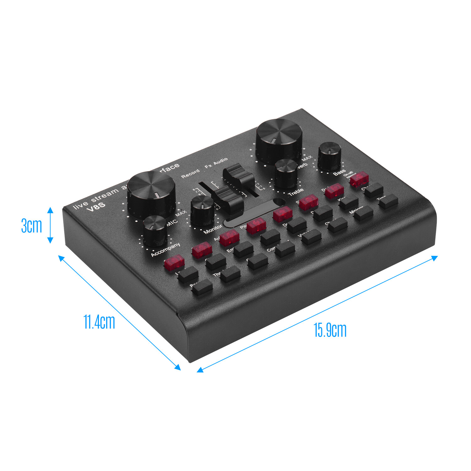 This product is a USB audio interface sound card that integrates functions of recording, Karaoke, live streaming and computer audio playback.