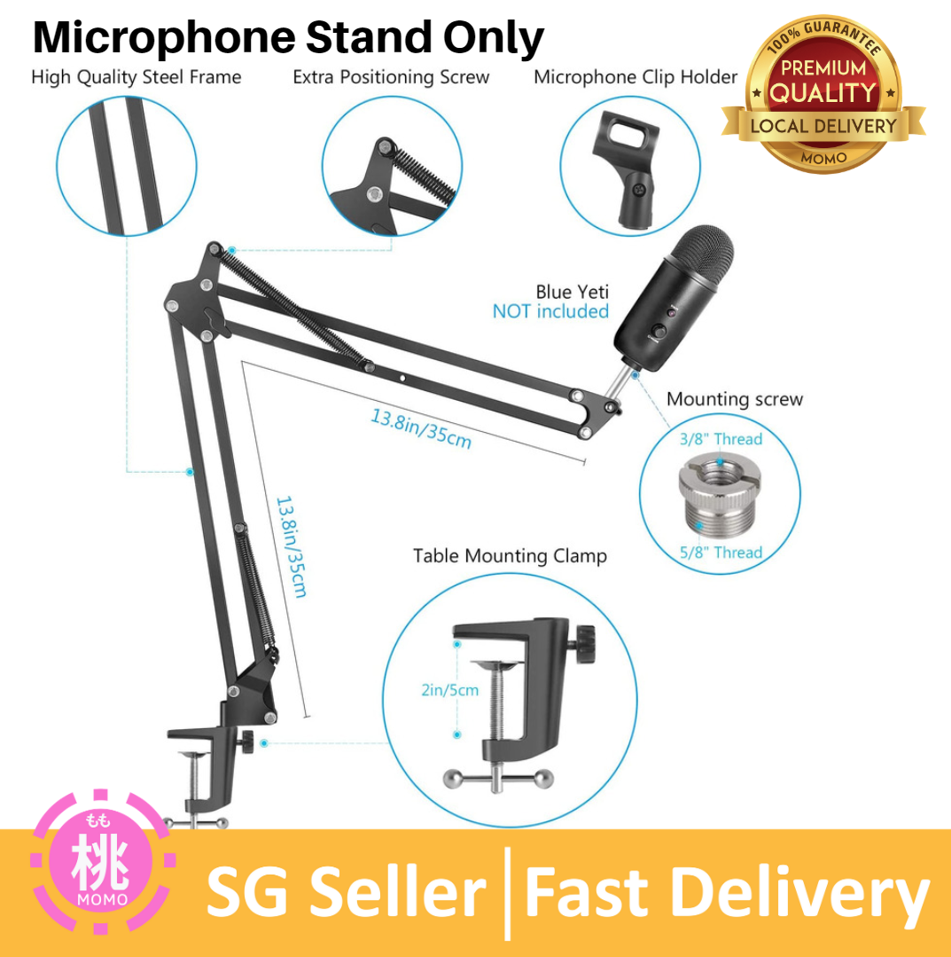 Heavy Duty Microphone Stand (Dual layered Windscreen Pop filter option available ), Suspension Boom Arm Stands for Blue Yeti , Blue Yeti X , Yeti Nano, Blue Snowball and Other Mic