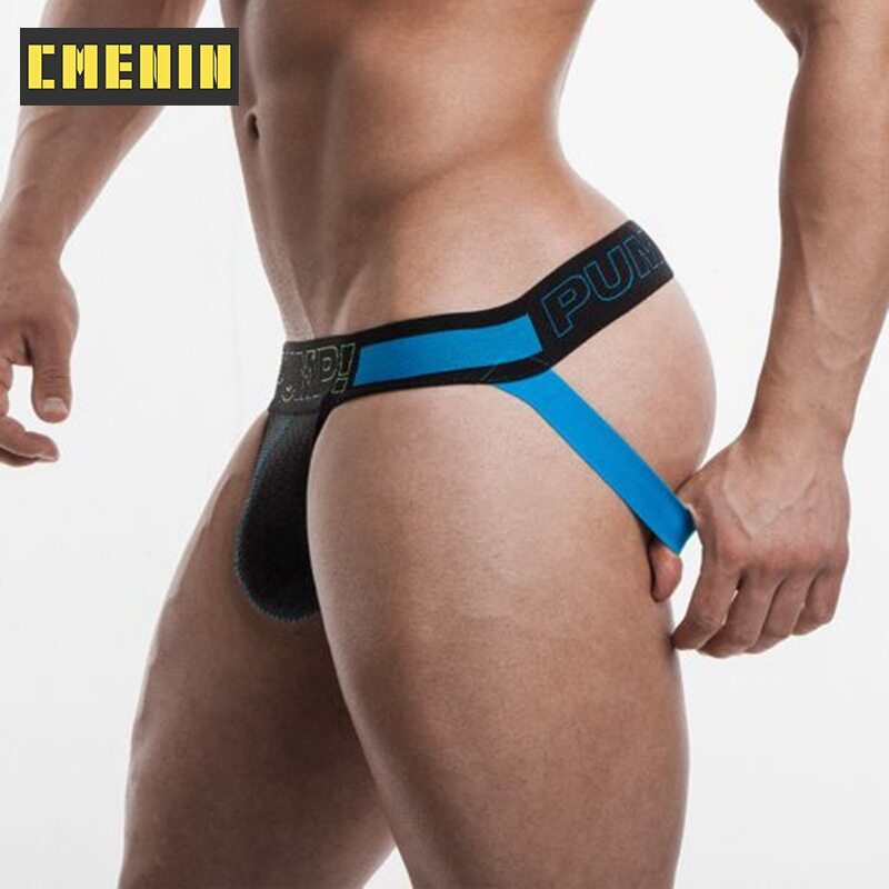 PUMP 4Pcs Patchwork Cotton Sexy Men Underwear Thong Mens Jockstrap Popular Thongs Jockstrap Men And G strings Lingeries CMENIN Soft Splice Innerwear H96