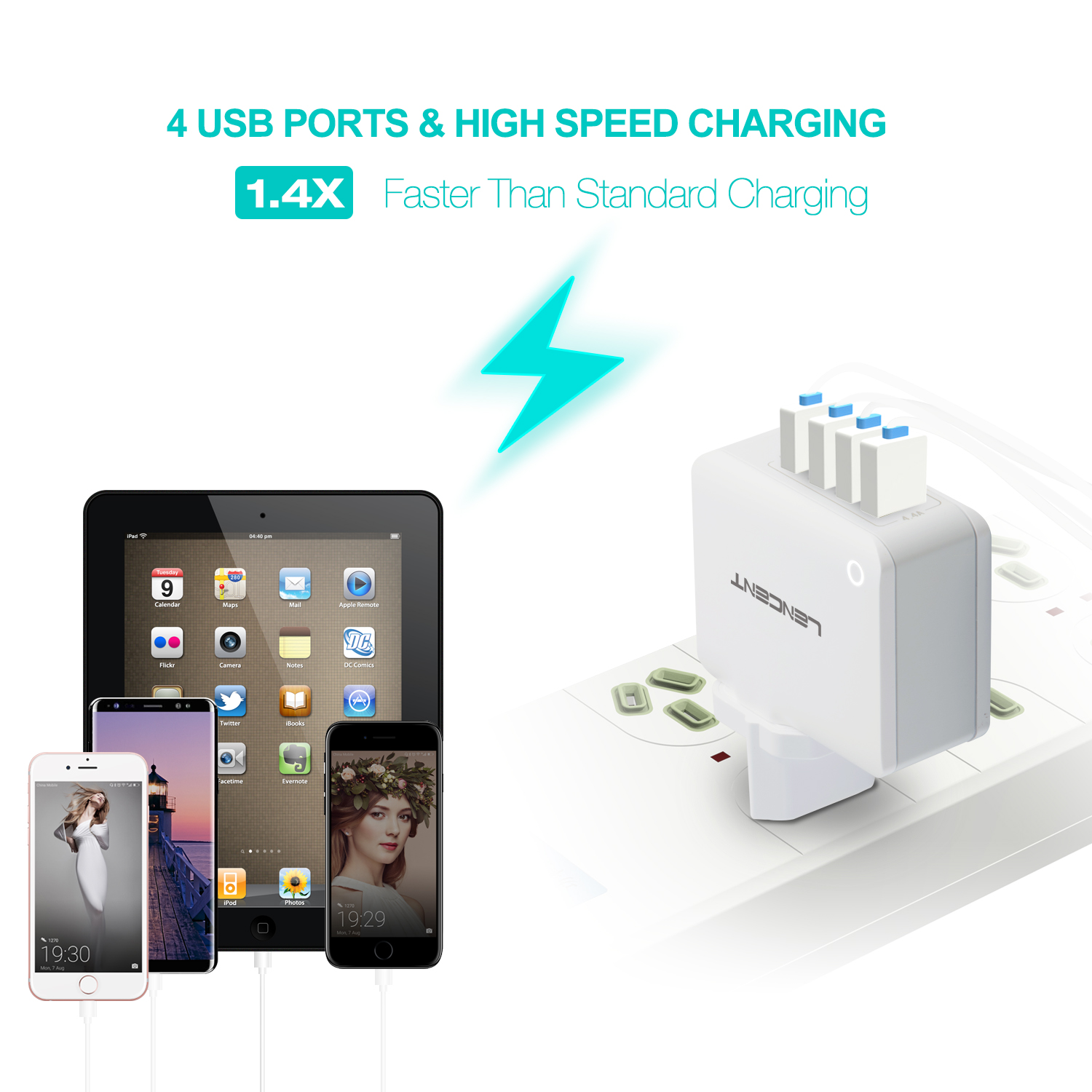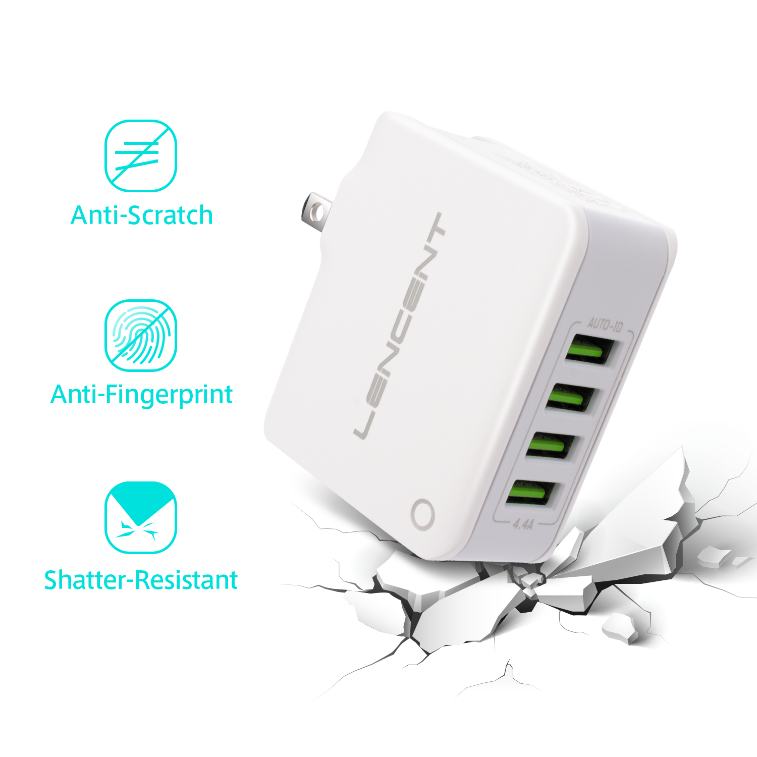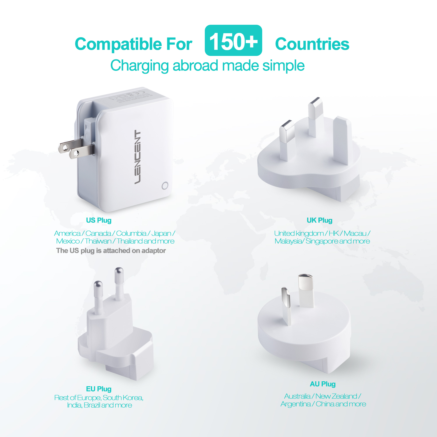 Lencent USB Charger Plug 4-Port USB Universal Travel Adaptor Plug 22W/5V 4.4A Wall Charger with Singapore/USA/EU/AUS Worldwide Travel Charger Adapter Multi Plug for iPhone iPad Android Tablets and Mor