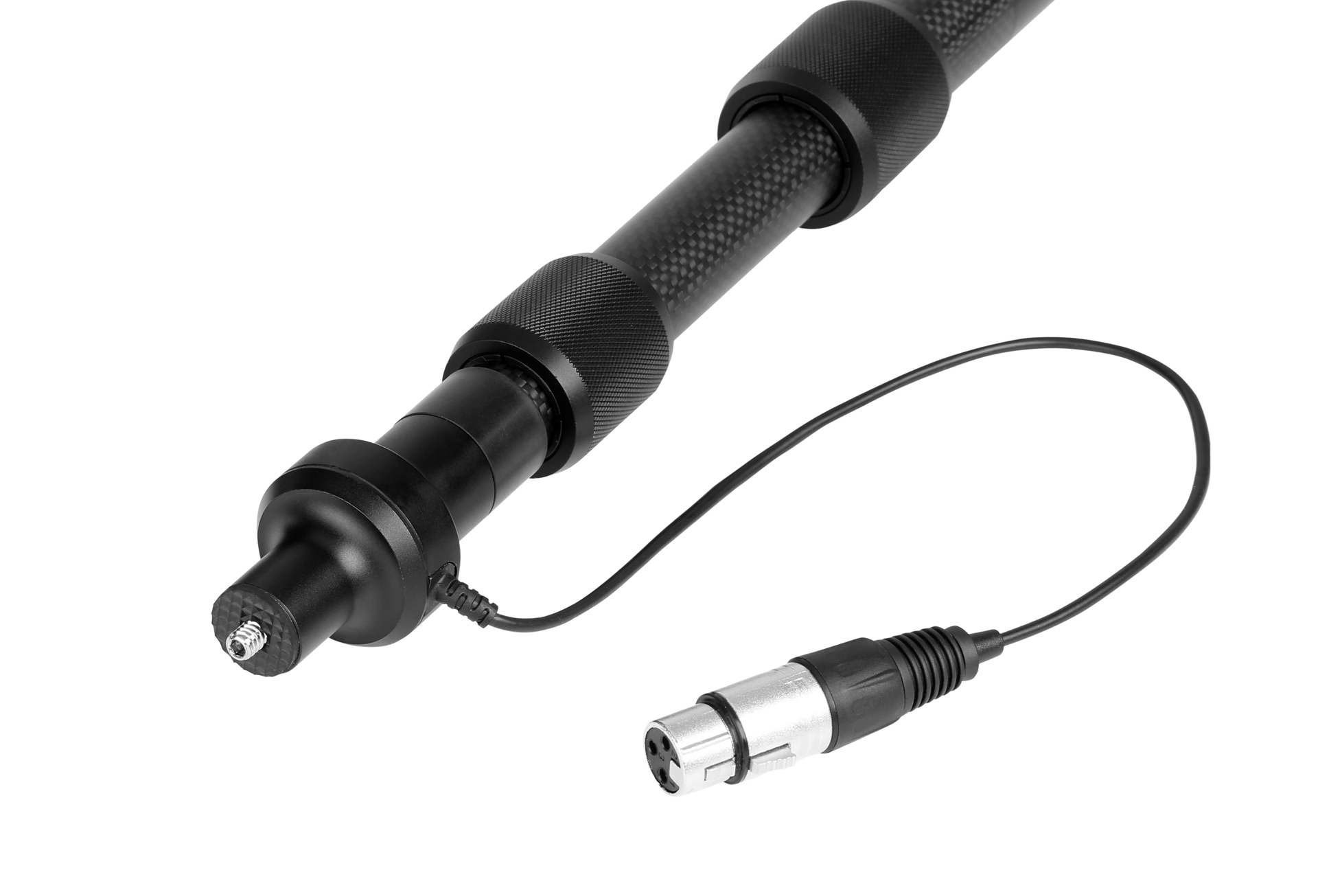 This pole features an internal coiled cable and an XLR connection at the base of the pole. The captive-collet coupling system locks each section in place for even further reliability.