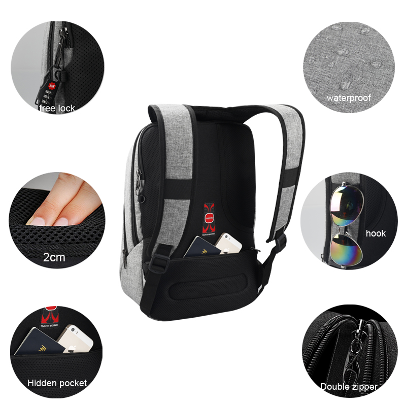 Tigernu Multifunctional Fashion Men backpack 17 Inches Laptop bag School bag T-B3164(Black grey)