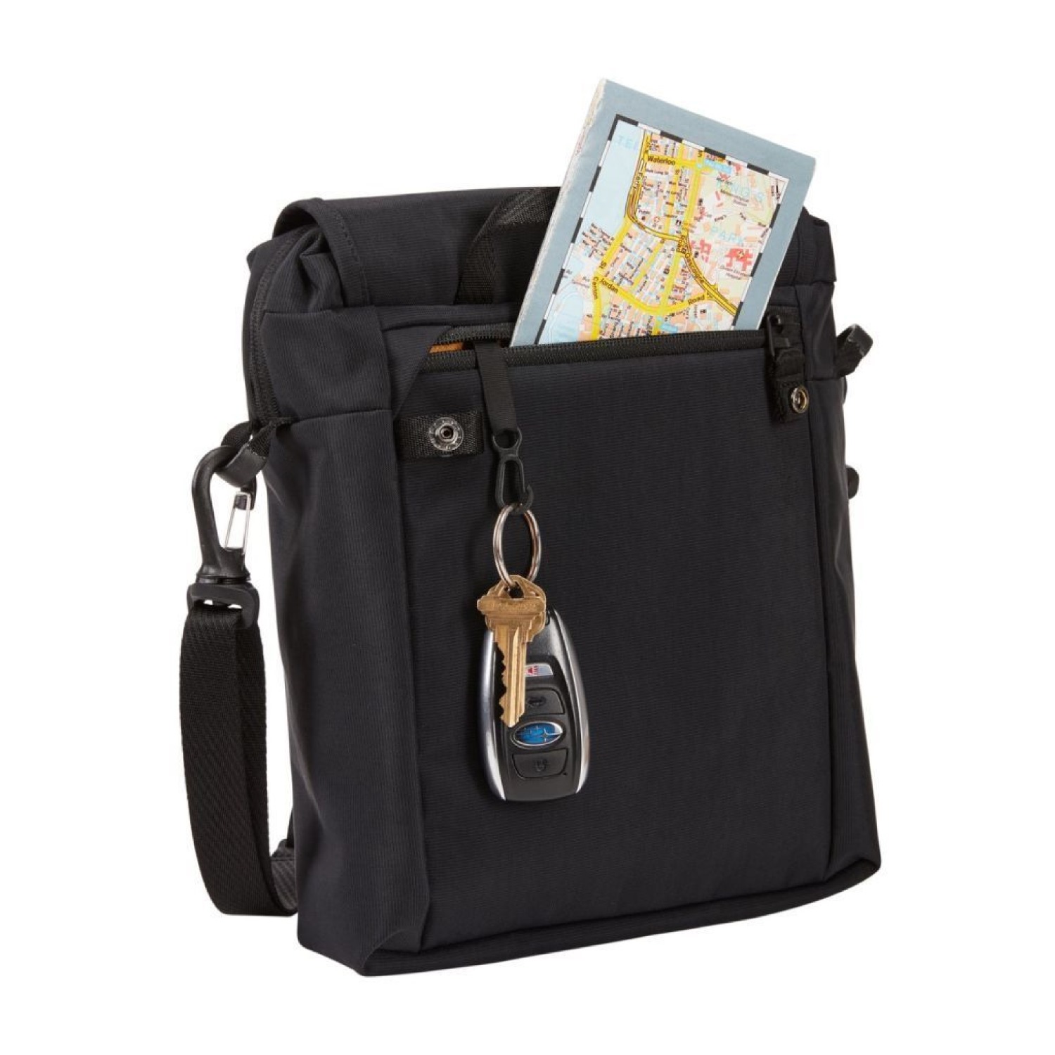A sleek crossbody bag with generous padding and anti-theft features.
