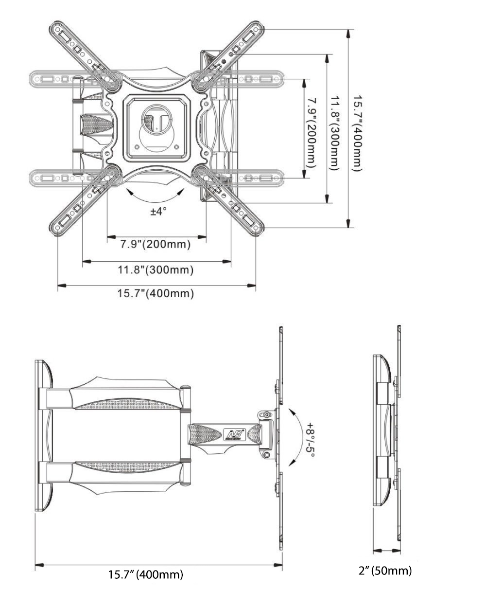•Ultra-Slim full motion articulating cantilever mount extends from 2" to 15.7" from the wall