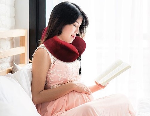 [DRM ONLINE] TRAVEL JOY ROLLABLE MEMORY FOAM NECK SUPPORT PILLOW (380G). Heightened Design for Better Support (MAROON)