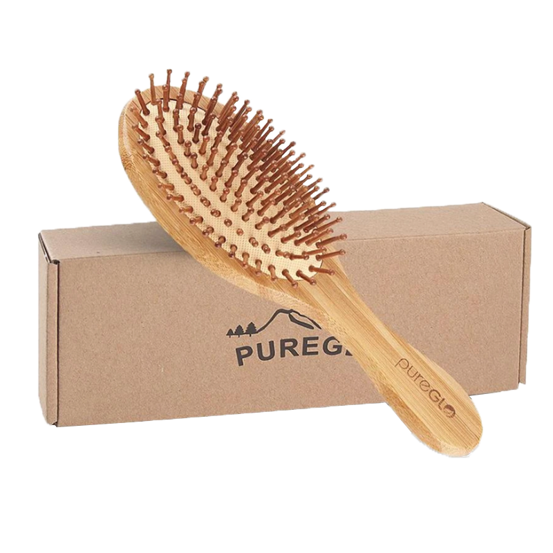 PureGLO Natural Wooden Oval Massage Bamboo paddle Hair Brush For Women And Men With Gift Box pet catmi comb dog hair comb