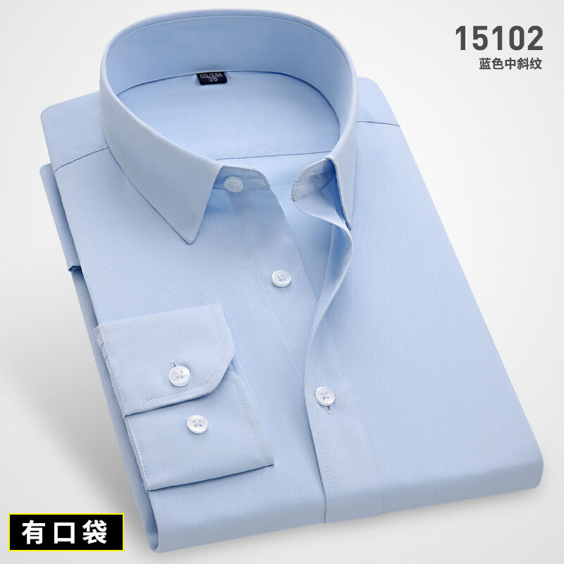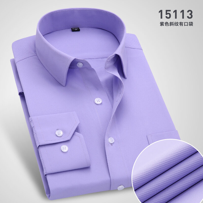 Spring Long-Sleeved Shirt Men's Youth Business Professional Workwear Solid Color White Shirt Slim-Fit Fleece-Lined Warm Formal Wear Inch