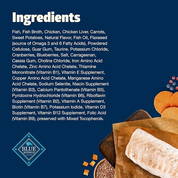 - MADE WITHOUT WHEAT: BLUE wet cat food contains NO chicken (or poultry) by-product meals, NO corn, wheat (a common thickening agent used by many other brands) or soy, and NO artificial flavors or preservatives