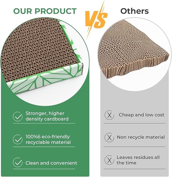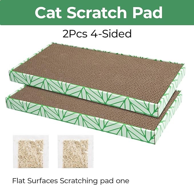 【Reversible for Extended Use】:This scratcher features a reversible design that doubles its lifespan. Simply flip the pad to use the fresh side once the other is worn, all made from eco-friendly, recycled materials.