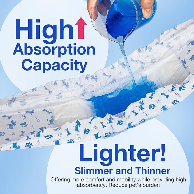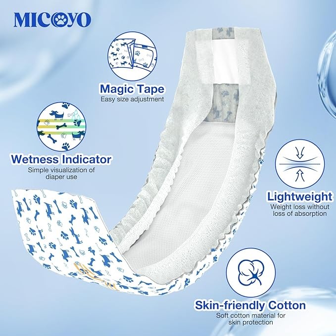 • Absorbent & Light: MICOOYO disposable male dog diapers are thin and lightweight, yet highly absorbent, handling large volumes of liquid without adding bulk.